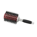 - Hairbrush head is vented constructed with an aluminum base to quickly absorb heat when used with blow dryer, speeding up your blow-drying process and saving you time! Rubber handle grip prevents heat from transferring to your hand